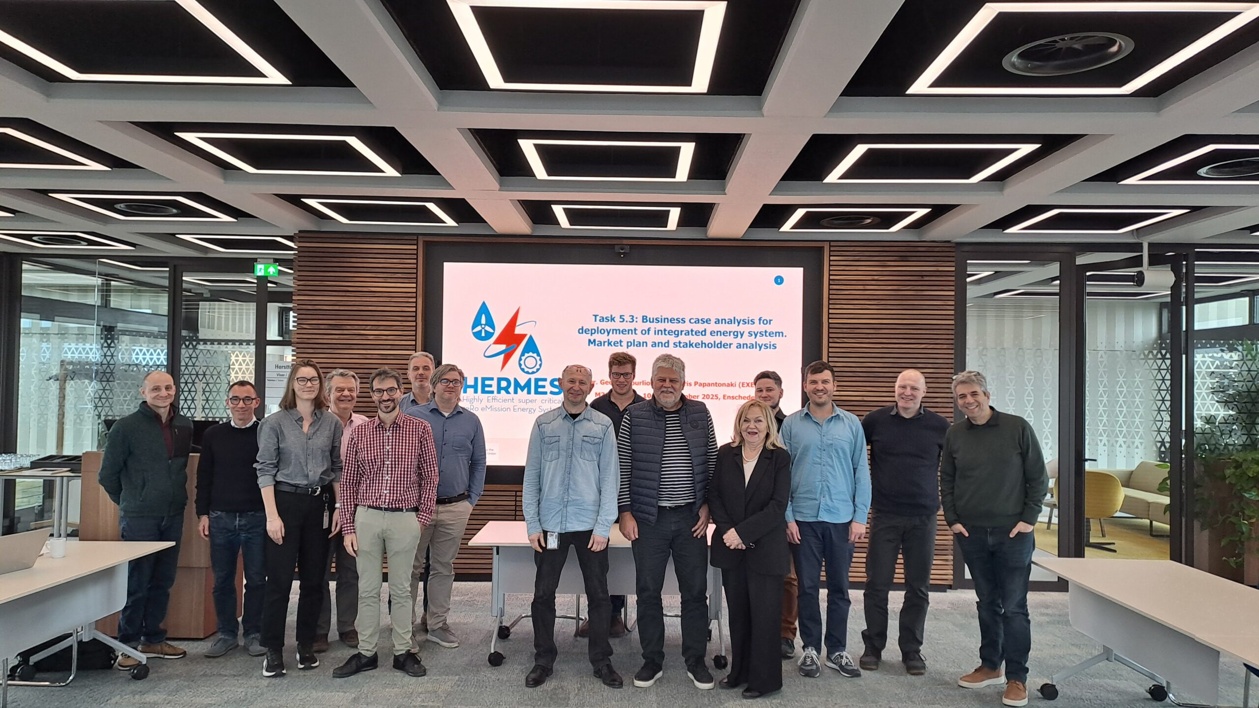The HERMES meeting of M36 was held at the University of Twente in the Netherlands, where project partners reviewed the progress achieved so far in developing a highly efficient supercritical energy system designed to operate with virtually zero emissions and support the EU’s decarbonization objectives. The project has entered its final year, which will be dedicated to advancing and demonstrating the first high-efficiency closed-loop energy system fueled by chemically stored renewable energy.